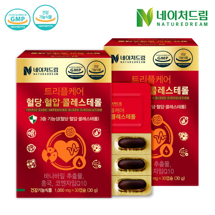 네이처드림 트리플케어 혈당 혈압 콜레스테롤 1,000mg x 30캡슐 2박스 / 바나바잎 / 코엔자임