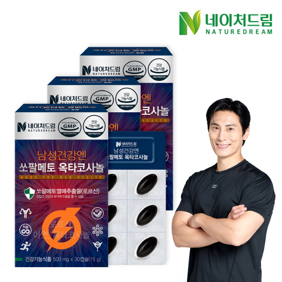 네이처드림 남성건강엔 쏘팔메토 옥타코사놀 500mg 30캡슐 3박스(3개월분)