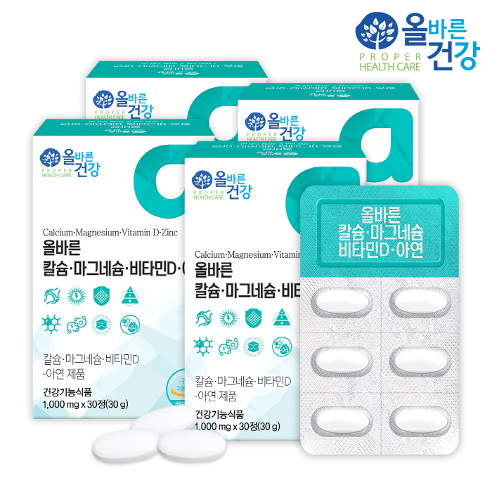 올바른 칼슘 마그네슘 비타민D 아연 x 30정 x 4박스 (4개월분)